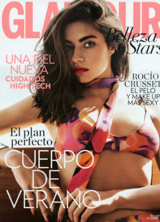 Una de las revistas de moda más importantes y que más venden en España, Glamour, se fija en la joven modelo y realiza con ella un reportaje sobre peinados y maquillajes que le consigue la portada de su especial de Belleza y Estrellas en mayo de 2015.