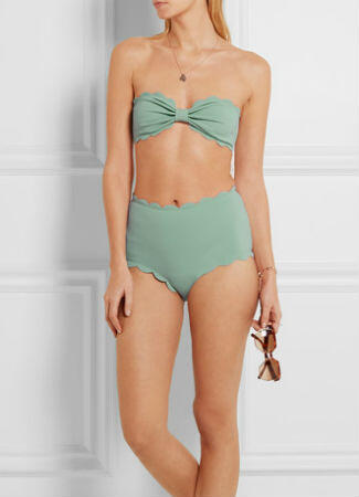Este bikini de Net a porter, modelo Marysia, tiene un estilo muy romántico con top de corte «bandeau» con ondas y braguita alta con aire de los años 50. El color celeste también es un plus, azul serenidad es uno de los elegidos por Pantone como preferido para 2016.