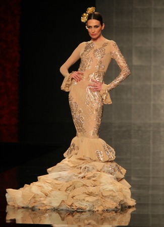 Vicky Martín Berrocal llevó a Simof los toques dorados de diferentes formas. En los tejidos para el traje de flamenca, en las flores-joya y en las cadenas que adornaban algunos de los diseños. El dorado es tendencia, adáptalo a tu estilo para estar a la última.