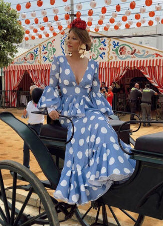 Así son los trajes de flamenca de las influencers en la Feria de Abril de Sevilla 2019 Bulevar Sur Moda HACE 6 años, 7 meses 47 / 65 Feria de Abril de Sevilla 2019: Nuria Cabrera Más información La sevillana no se ha perdido la feria y uno de sus trajes más espectaculares es este original diseño de Mónica Méndez en tono celeste con lunares blancos. Lo combina con pendientes de Lamágora y flores rojas. Anterior Siguiente