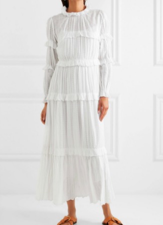 Vestido maxi de algodón con rayas Yukio de una de las diseñadores favoritas de las influencers. Confeccionado con algodón blanco suizo, tiene un cierre en la parte posterior. Aunque la tela es fina, cuenta con una combinación para que no se vea más de lo necesario.
