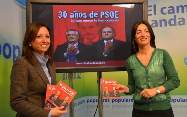 Las populares Patricia Navarro y Rosario Soto, ayer presentando la campaña «30 años de PSOE»