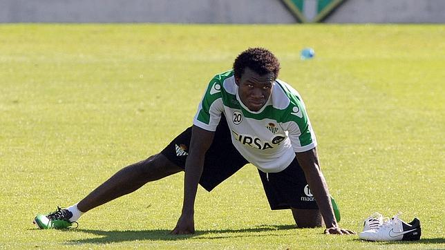 El nigeriano Nosa Igiebor, durante un entrenamiento con el Real Betis