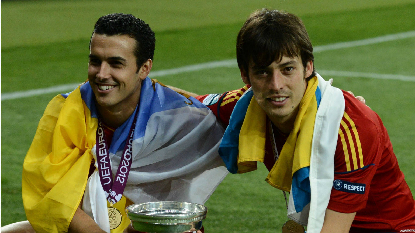 Pedrito y David Silva sonríen con la Eurocopa 2012