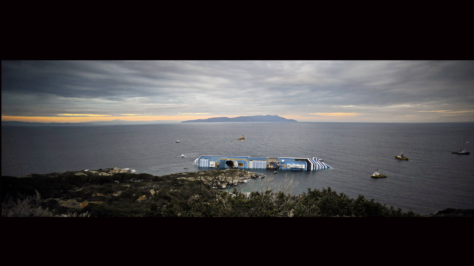 Fotografías submarinas del crucero encallado frente a las costas de la isla del Giglio, en el centro de Italia