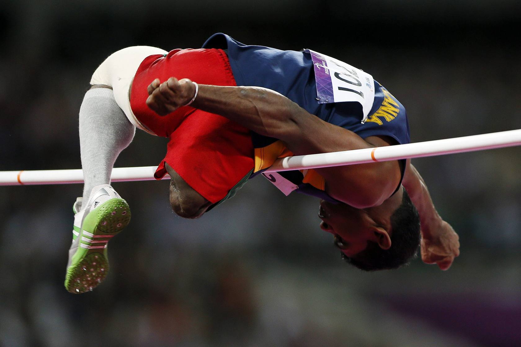 Dobagoda Liyanage, de Sri Lanka, compitiendo en salto de altura los Juegos Paralímpicos de Londres