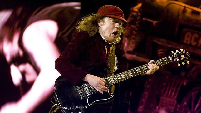 Angus Young con su mítico traje de colegial y el cantante Brian Johnson