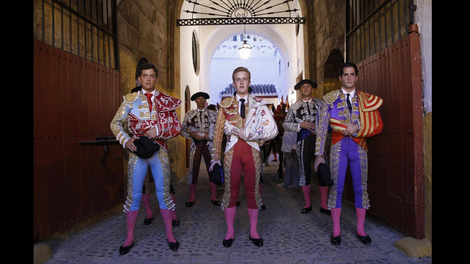 Los tres toreros antes de salir al ruedo, de izquierda a derecha: Eloy Ortega, Jesús Bayort y Carlos Martín