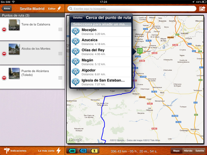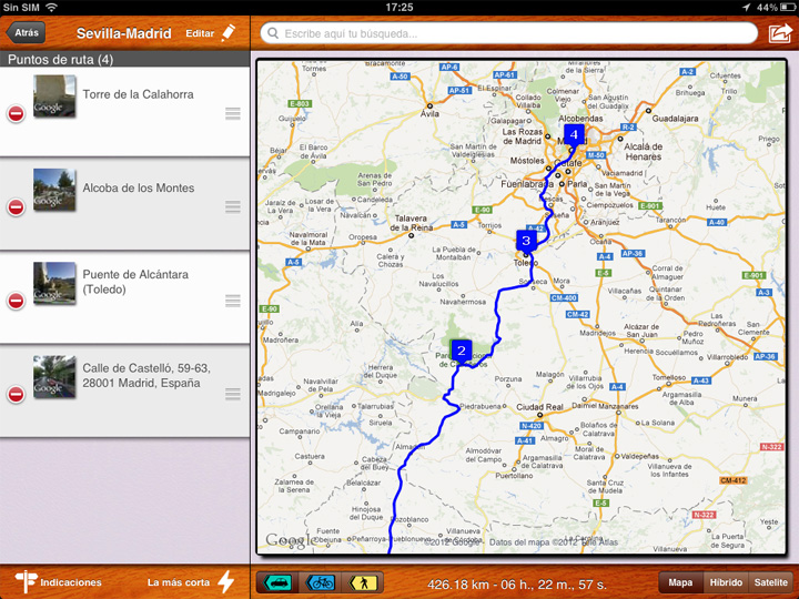 Y no es que Rutas lo haga por nosotros, pero si nos ayuda gracias a su integración con Google Maps y sobre todo, con Street View, gracias a la cual tenemos una perfecta referencia de nuestro destino y nuestra trayectoria. La aplicación incorpora una eficaz búsqueda de lugares, restaurantes, bares y monumentos que podremos añadir a nuestra ruta si lo deseamos.