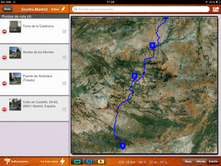 Routes resulta la aplicación perfecta para aquellos que gustan de planificar cada detalle en sus vacaciones o visitas turísticas. Ningún desplazamiento nos cogerá así por sorpresa gracias a los tres tipos de mapas de los que disponemos en las vistas clásica, híbrida y satélite de Google Maps que serán nuestro aliado idóneo al crear rutas para conducir, para practicar ciclismo o caminar.