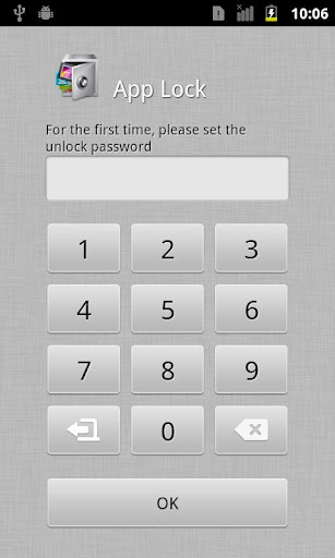 La primera vez incies Applock , te pedirá que elijas una contraseña o patrón que será necesaria para deshabilitar el bloqueo de la aplicación y el resto de aplicación que hayas elegido ocultar.