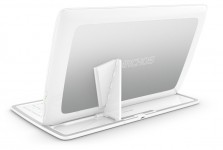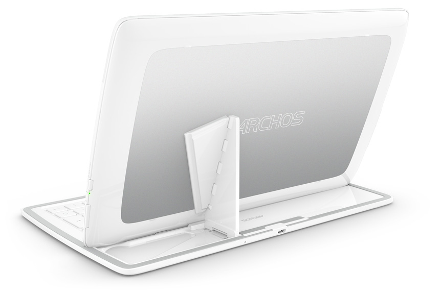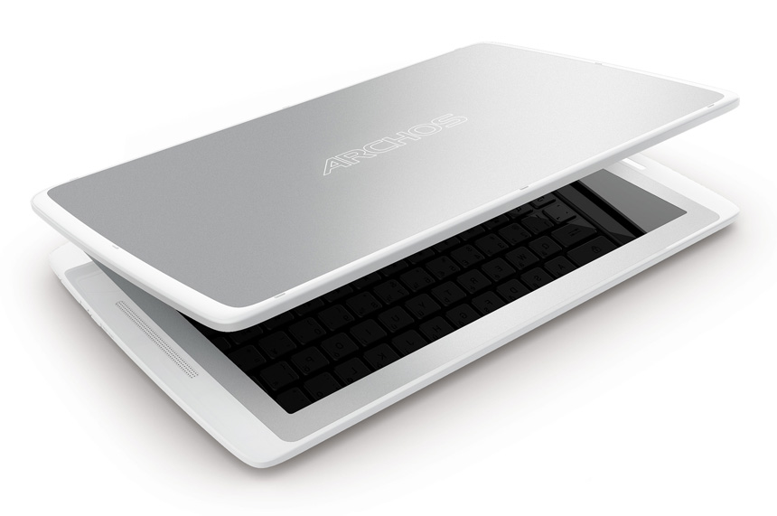 Pero al margen de por estas óptimas (que no punteras) capacidades, el Archos 101XS llama la atención por su diseño. De su tamaño destaca lo delgado de su formato (273 mm de ancho, 170 mm de alto y tan solo 8 mm de grosor) y su razonable peso de 600 gramos. Pero hay que reseñar que la tableta incorpora de serie una carcasa protectora que hace a su vez de teclado, con lo que se convierte en un híbrido entre tablet y portátil al estilo de la serie Transformer de ASUS. Con ello, el terminal gana un peso extra de 200 gramos y un grosor de 5 milímetros, pero gana enormemente en seguridad y en comodidad a la hora de procesar textos.