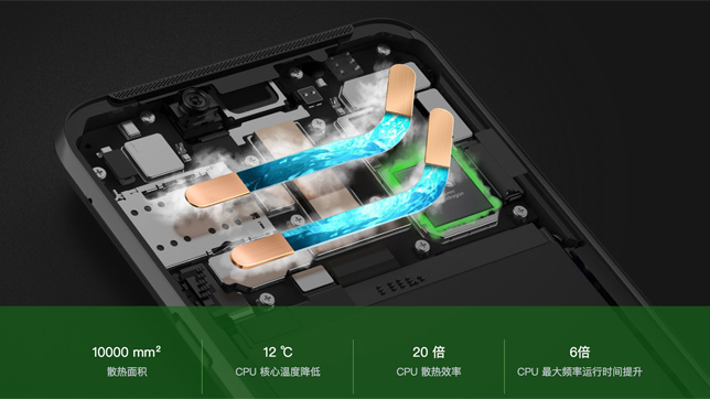 A tenor de las especificaciones técnicas antes señaladas estaríamos ante otro gama alta más, pero como ocurre con este tipo de terminales es el apartado de la refrigeración líquida lo que marca las diferencias. Xiaomi, para este Black Shark Helo, ha mejorado el sistema, que ahora es dual, es decir cuenta con dos ‘cooling pipes’ -tubos de termosifón bifásicos- capaz de reducir la temperatura del CPU -y así mejorar el rendimiento del terminal en los picos de exigencia gráfica- hasta en 12 grados, frente a los 8 del primer modelo. Mención especial merecen también los botones físicos para activar el modo de alto rendimiento para sacar el máximo partido a la potencia del dispositivo.