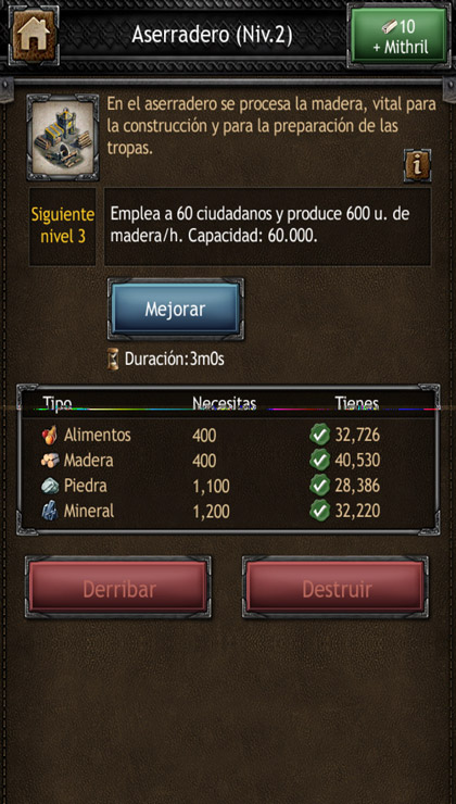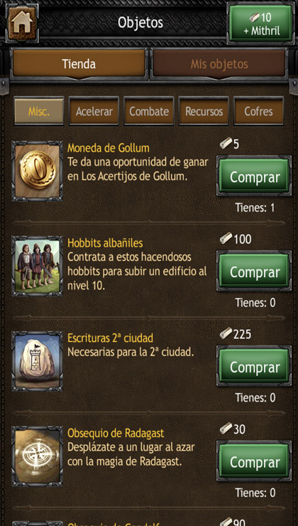 Como defensa contaremos con unidades de tropas lideradas por héroes y con unidades especiales que podremos descubrir a medida que avancemos. El juego, con una interfaz que se antoja enrevesada y recargada por la numerosa presencia de elementos, ofrece un completo tutorial inicial para ir guiando a los menos experimentados en este tipo de entretenimiento. De cualquier modo, para llegar a disfrutar del mismo es necesario dedicar bastante tiempo para obtener resultados. No es por tanto el típico juego para móviles que permite superar niveles mientras se espera el transporte público. Pero precisamente por su complejidad, a buen seguro que resulta interesante para quienes gustan de urdir estrategias, entablar alianzas (hay un chat en vivo entre usuarios en varios idiomas) y demostrar al mundo quien es el mejor conquistador de la Tierra Media. Y los fanáticos de las aventuras de Bilbo Bolsón, Gandalf el gris y el maltrecho Gollum también disfrutarán con algunos de los extras de la aplicación, como el simpático guiño a los acertijos de Gollum.