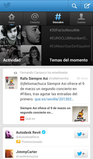 - Las aplicaciones para Android y iOS se renuevan con links clicables desde el timeline, novedades en la pestaña descubre y nuevas opciones de búsqueda
