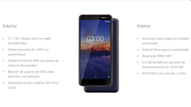 Nokia 3.1, con pantalla 18:9, ya a la venta en España