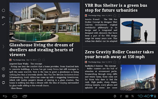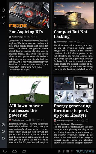Reader HD tiene dos diseños, clásico y magazine. Mientras que le primero imita la distribución de contenido de Google Reader, el segundo reorganiza las noticias para mostrarlas como si fuera una revista. Necesita conexión a Internet para descargar lainformación, pero puede funcionar también en modo offline.