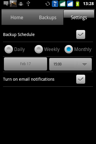 inDefend requiere que nos registremos en su servicio para poder almacenar en la nube hasta 10 copias de seguridad que podremos configurar. Por ejemplo, se puede programar para que una de ellas se realice todas las semanas, otra mensual, etcétera y que nos avise por correo electrónico cada vez que se complete con éxito. También se puede utilizar para crear una copia antes de instalar alguna aplicación en fase beta y así tener un punto de recuperación que nos deje el móvil en la misma situación que antes de la instalación.