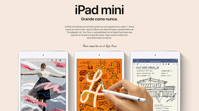 El nuevo iPad Mini está ya disponible, en las tiendas Apple y demás distribuidores oficiales, partiendo desde un precio de 449 euros para el modelo Wi-Fi y de 589 euros para el modelo Wi-Fi + Celular, mientras que el nuevo iPad Air parte de 549 euros para el modelo Wi-Fi y de 689 euros en el caso del modelo con conectividad LTE. Y en lo que respecta a los accesorios, el Apple Pencil de primera generación se puede adquirir por 99 euros, y la Smart Keyboard de 10.5 pulgadas tiene un precio de 179 euros.