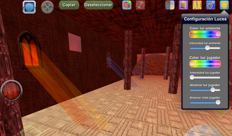 Todo el sistema de creación del juego es completamente visual, sin necesidad de programar en ningún tipo de lenguaje. Es muy sencillo, no necesitarás modelar en 3D ni importar modelos 3D, todo se realiza con los bloques 3D predefinidos que incluye la App y numerosas texturas, ya sean texturas predefinidas o generadas a partir de imágenes importadas de tu Librería de Fotos.