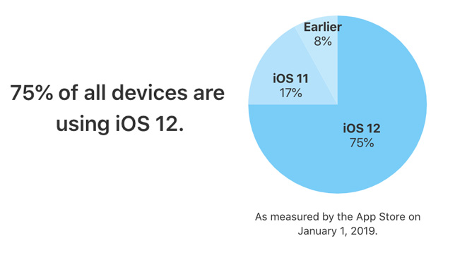 iOS 12 ya está presente en el 75% de los dispositivos compatibles