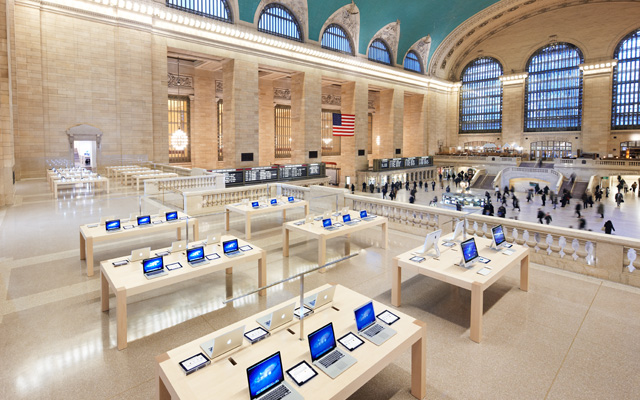 Estados Unidos, por ser el país de origen de Apple, acoge un amplio número de tiendas, destacando sobre todas ellas la última en inaugurarse, la N.Y. Central Station. La compañía de Cupertino abrió en diciembre de 2011 una espectacular sucursal en la Grand Central Terminal de Manhattan.
