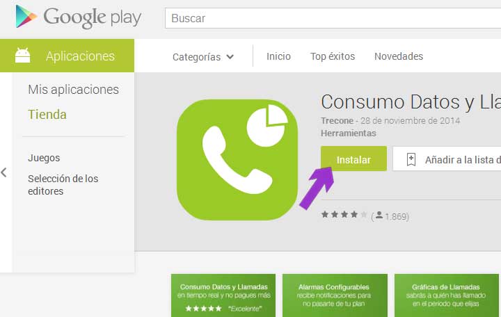 Lo primero que vamos a hacer es descargar en nuestro Nexus 5 la aplicación que vamos a utilizar, que en este caso se llama Consumo de Datos y Llamadas, y que está en Google Play de forma gratuita. La instalamos y le otorgamos los permisos que requiere.