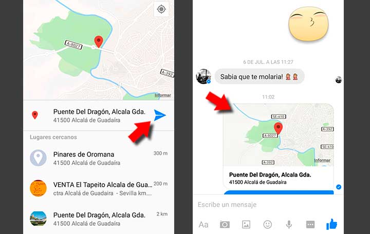 Comparte una ubicación con Facebook Messenger