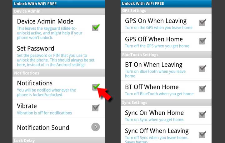 Esta aplicación dispone de varias opciones de configuración personalizadas, como por ejemplo el recibir notificaciones cuando el bloqueo se active o desactive, o las acciones activadas o desactivadas dependiendo si nuestro Xiaomi Mi4 está dentro o fuera del radio de acción de nuestras redes Wi-Fi seguras.