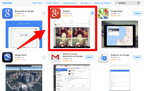 Lo primero que debes hacer es tener la aplicación de Google+. Para ello accede a la App Store y descárgala.