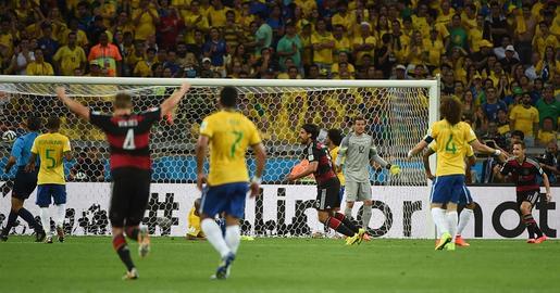 Lahm centra al punto de penalti y Schurrle, libre de marca, remata a placer. Humillación total de Brasil.