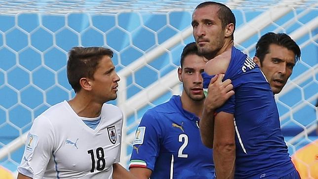 Chiellini fue mordido por Suárez en el tramo final del partido entre Uruguay e Italia, que en el momento del incidente empataban aún sin goles, un resultado que clasificaba a los "azzurri".