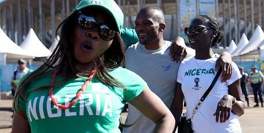 Los hinchas nigerianos, aunque son minoría, también se han dejado notar en las inmediaciones del estadio en los momentos previos al partido.