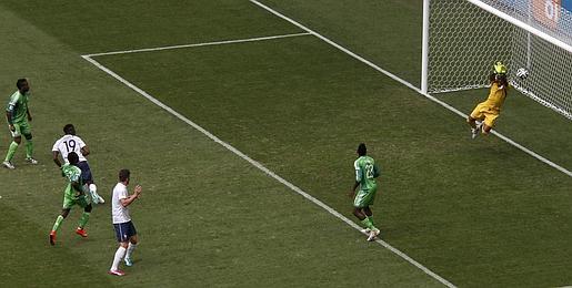 Tremendo error de Enyeama, que estaba siendo uno de los mejores de Nigeria, al salir a despejar un córner. El balón se le escapa y llega a Pogba, que marca de cabeza.
