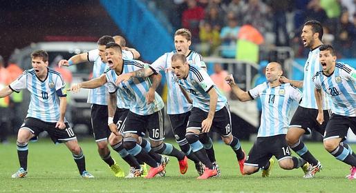 Espectacular también la celebración de los jugadores argentinos cuando Maxi ha marcado el penalti decisivo y ha metido a Argentina en la final del Mundial de Brasil.