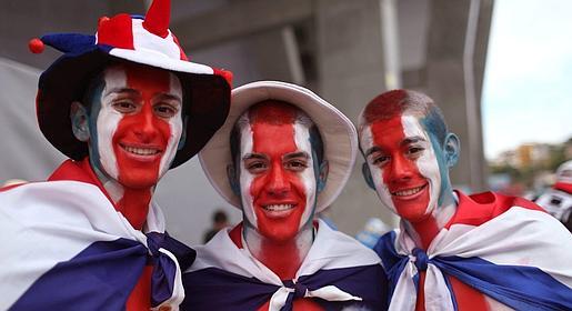 Es el turno del himno de Costa Rica. Sus aficionados cantan en las gradas.