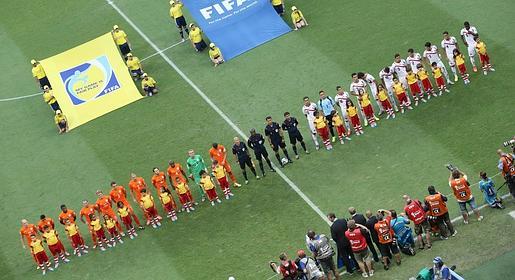 Los protagonistas ya están sobre la hierba. Llega el momento de escuchar los himnos. Suena primero el de Holanda.