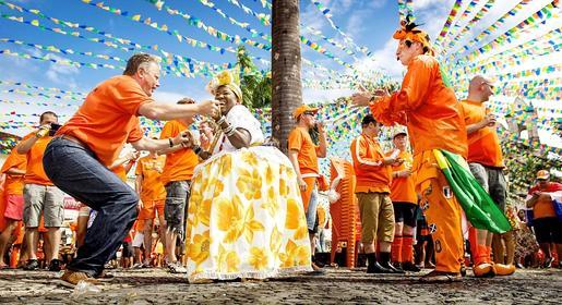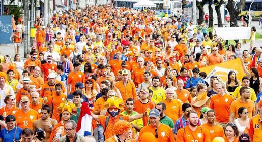 Mucha animación en los alrededores del Arena Fonte Nova. Esta es la imagen de la jovial afición holandesa.