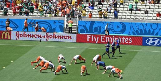 Tiempo muerto en el estadio Castelão de Fortaleza. Los jugadores se van a la banda para refrescarse.