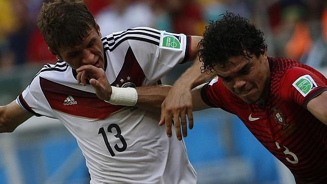Portugal estaba fuera del partido. En apenas media hora la máquina alemana de Joachim Löw se había puesto con un 2-0 favorable en el marcador y los lusos no lograban de ninguna manera sacudirse su dominio. Müller, tras un discutido penalti, y Hummels, tras adelantarse a Pepe en un saque de esquina habían puesto cuesta arriba el debut a los de Paulo Bento.