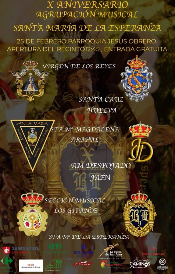 Certamen de bandas con motivo del X aniversario de la Agrupación Musical «Santa María de la Esperanza», en la Parroquia de Jesús Obrero, sita en la calle Padre José Sebastián y Bandarán nº 5, en la que intervendrán las siguientes formaciones musicales: