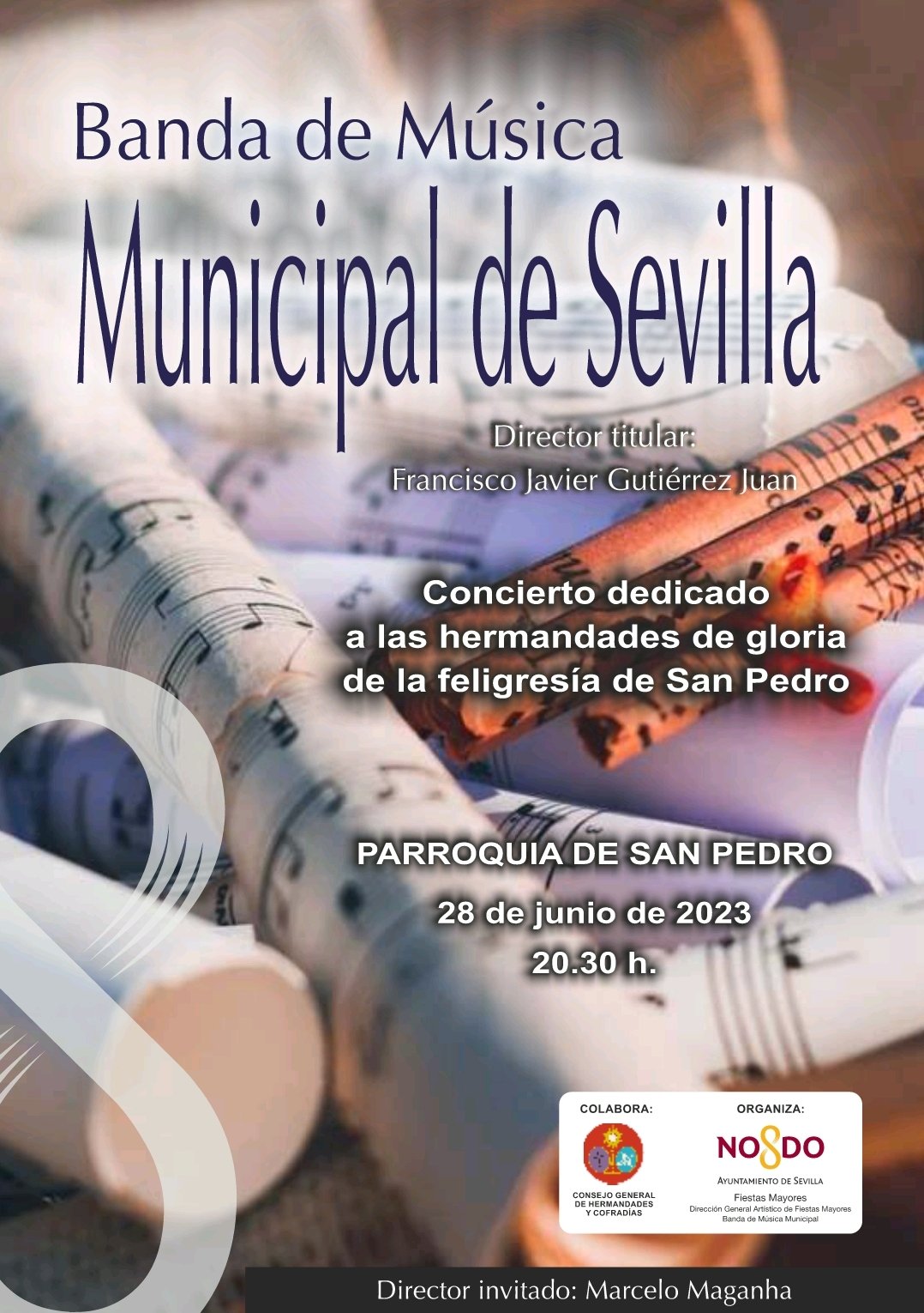 Concierto de marchas procesionales de las Hermandades de Gloria de la feligresía de San Pedro, en la parroquia de San Pedro, sita en la plaza de San Pedro, a cargo de la Banda Sinfónica Municipal de Sevilla.