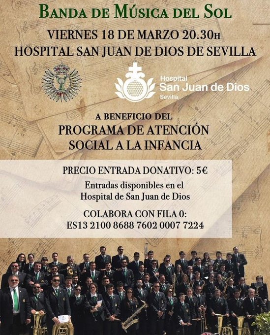 Concierto de marchas procesionales en la Iglesia del Hospital de San Juan de Dios, sita en la Plaza del Divino Salvador, a cargo de la Banda de Música «Ntra. Sra. del Sol», que interpretará el siguiente repertorio musical: