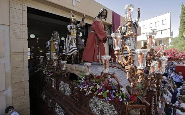 Igualá de costaleros del paso de misterio de Ntro. Padre Jesús de la Esperanza en el Puente Cedrón, en la parroquia de la Milagrosa, sita en la avda. de la Ciudad Jardín.