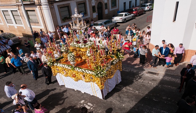 El paso de la custodia irá a las órdenes de Carlos Villanueva Granado y el acompañamiento musical correrá a cargo de la Sociedad Filarmónica «Ntra. Sra. del Carmen» de Salteras.