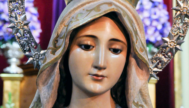 Salida procesional de la Inmaculada Milagrosa, en paso, desde la parroquia de Ntra. Sra. de las Mercedes y Santa Genoveva, sita en la avda. de los Teatinos nº 44, discurriendo por las calles de la feligresía, con motivo del 80 aniversario de su llegada a la parroquia y de la celebración del II Congreso Internacional de Hermandades y Piedad Popular.