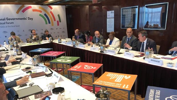 Hoy lunes, el regidor ha mantenido encuentros con representantes políticos locales y regionales convocados por la organización Ciudades y Gobiernos Locales Unidos (CGLU) para consensuar las prioridades y las aportaciones que tienen los municipios y que se elevarán a la cumbre de la ONU que se celebrará en septiembre próximo y que centran la ruta de impulso al «Compromiso de Sevilla».