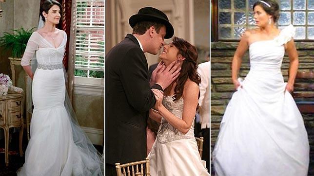 Aunque el secreto mejor guardado de la serie era con quién se casaría Ted Mosby, ha habido varias bodas y conatos de boda. A la derecha de la imagen, Victoria, una de las candidatas para conquistar el corazón del protagonista que se lo pensó dos veces antes de contraer matrimonio. En el centro, Lily y Marshall el día de su enlace y a la izquierda, Robin, en uno de los flashforward de la serie, el día de su boda con Barney.